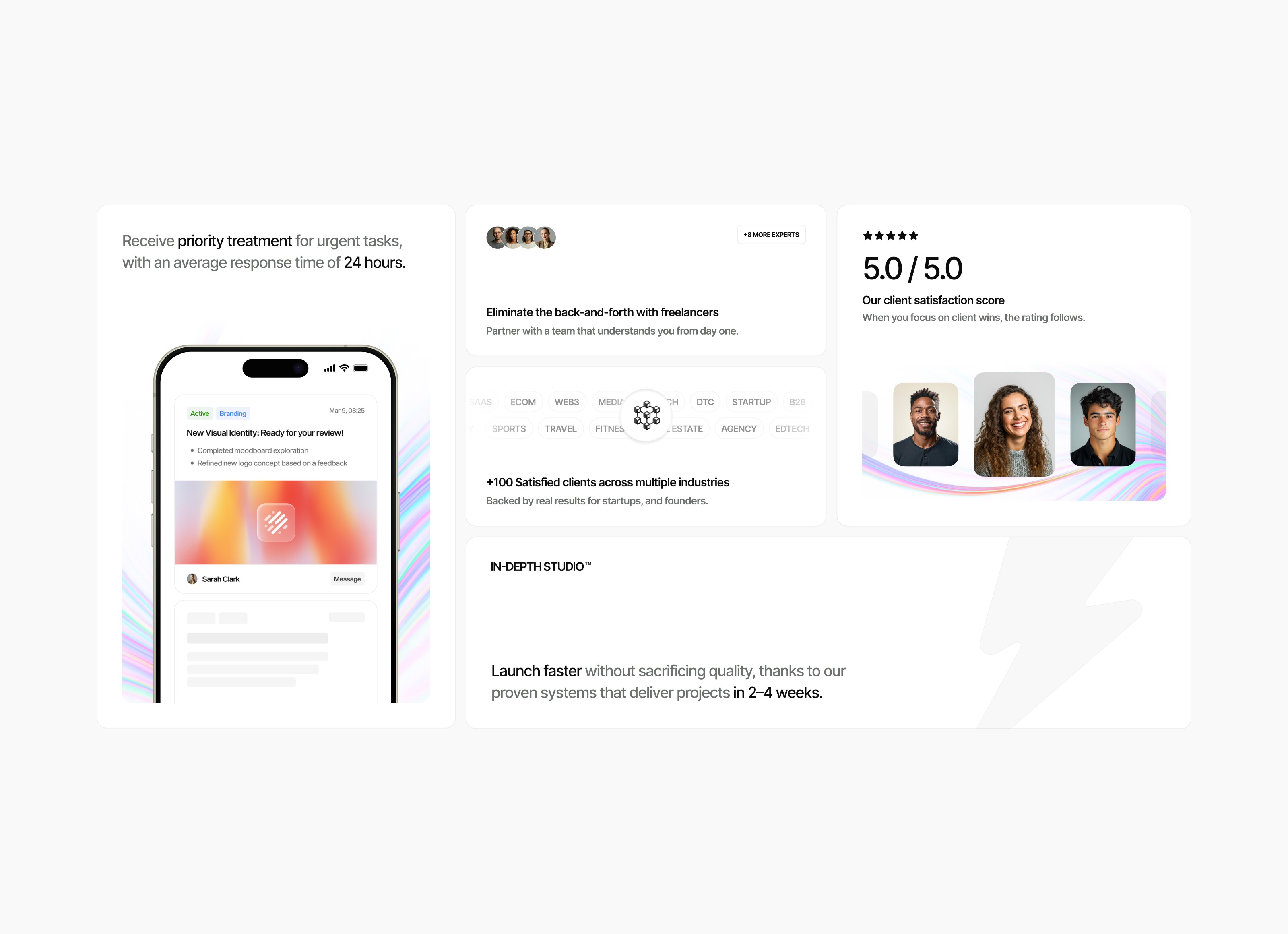 We work primarily with SaaS startups and agency founders who've proven their model but need their website to reflect that. Most of our clients are post-product-market fit, generating revenue, and ready to invest in web presence that matches their ambition.